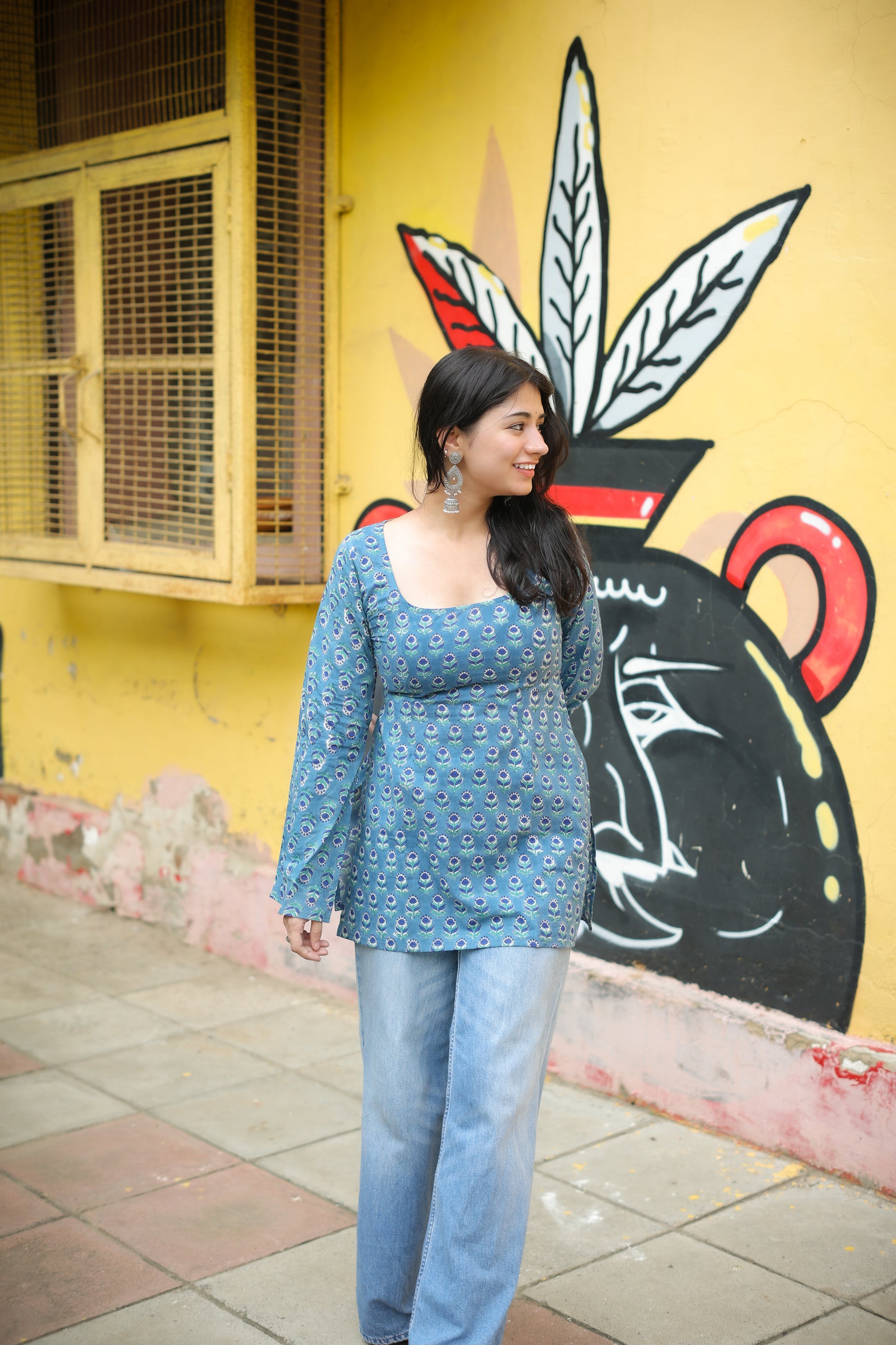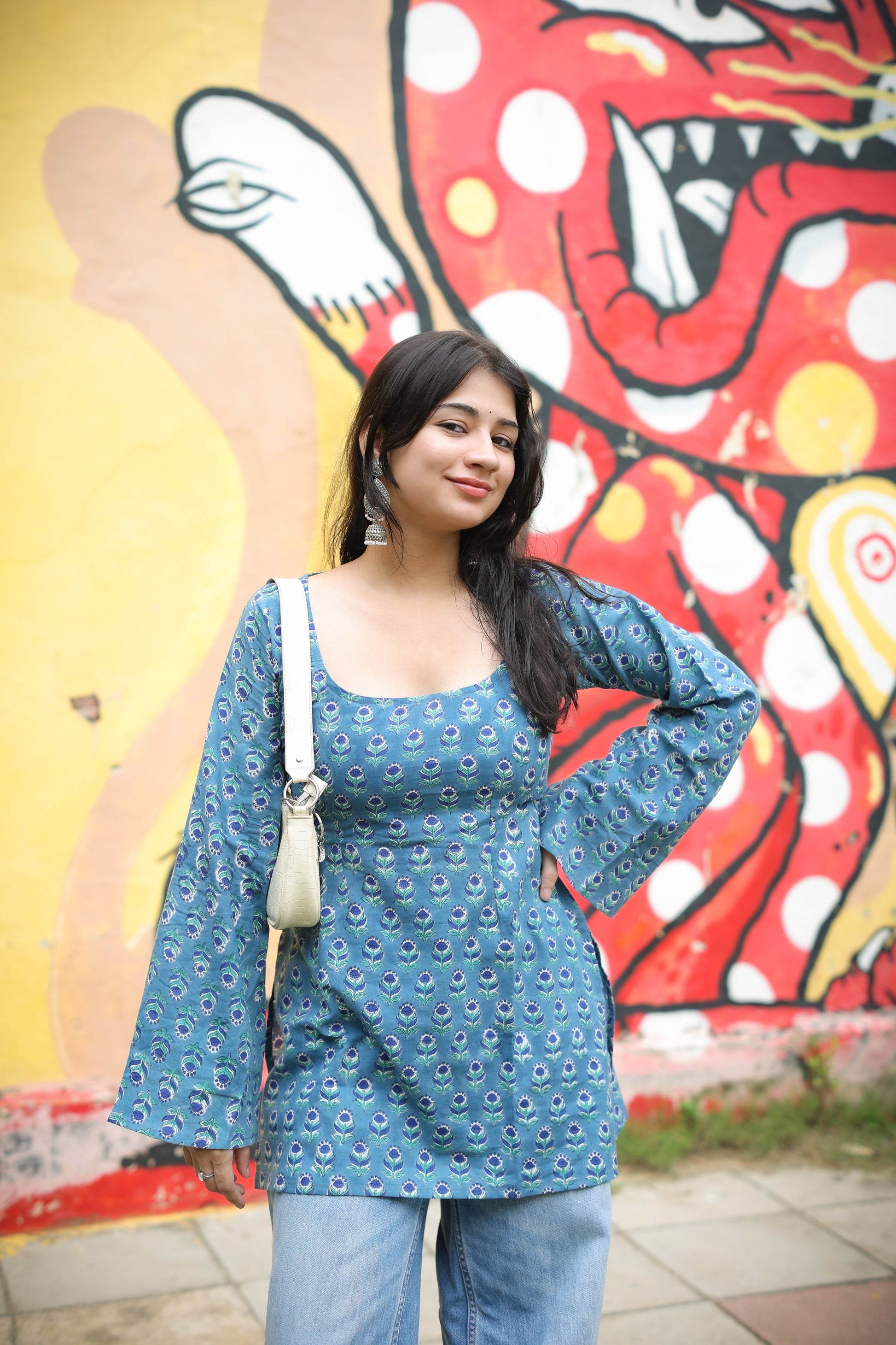 Naina Blue Hand Block Short Kurti